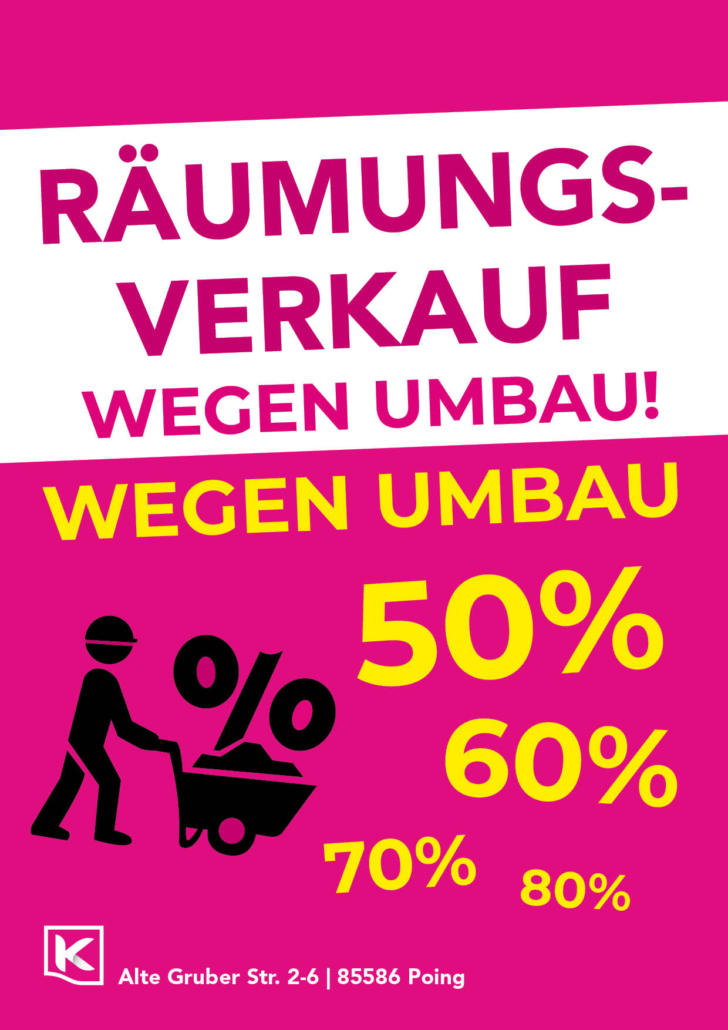- Großer Räumungsverkauf in unserer Filiale in Poing! Januar 19, 2026